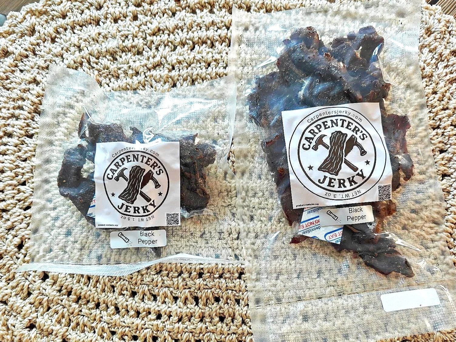 Salted Cinnamon Sugar Pretzels $4.00 Garlic Ranch Pretzels $4.00 Red Curry Beef Jerky 1.5oz $4.00 Red Curry Beef Jerky 3oz $8.00 Carpenter's Black Pepper Jerky (1.5oz) Sale Price: $3.00 Original Price: $4.00 Sale Carpenter's Original Jerky (1.5oz) $4.00 Carpenter's Spicy Jerky (1.5oz) $4.00 Carpenter's Chili Lime Jerky (1.5oz) $4.00 Carpenter's Mango Beef Jerky (1.5oz) Sale Price: $3.00 Original Price: $4.50 Sale Around the Kitchen Box (5 Flavors, 1.5oz ) Sale Price: $18.50 Original Price: $19.50 Sale Carpenter's Mango Beef Jerky (3oz) Sale Price: $8.00 Original Price: $9.50 Sale Carpenter's Chili Lime Jerky (3oz) $8.00 Carpenter's Spicy Jerky (3oz) $8.00 Carpenter's Original Jerky (3oz) $8.00 Carpenter's Black Pepper Jerky (3oz) Sale Price: $7.00 Original Price: $8.00 Sale